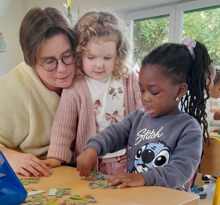 “Ik heb moeten leren loslaten. Want als verpleegkundige zit het in je bloed om te helpen en ondersteunen. Maar ik leerde dat het heel belangrijk is om te investeren in zelfredzaamheid. Natuurlijk gaat het sneller wanneer ik de kinderen hun jas dichtrits of muts opzet, maar daar breng je ze niets mee bij. Hoe fijn is het om basissteentjes te mogen leggen en de kinderen te zien evolueren! Al hebben ze nog een hele weg af te leggen, het is nu dat je een belangrijke basis legt. Bovendien geeft het veel voldoening om een veilige cocon te creëren, wat niet voor elk kind evident is. “
