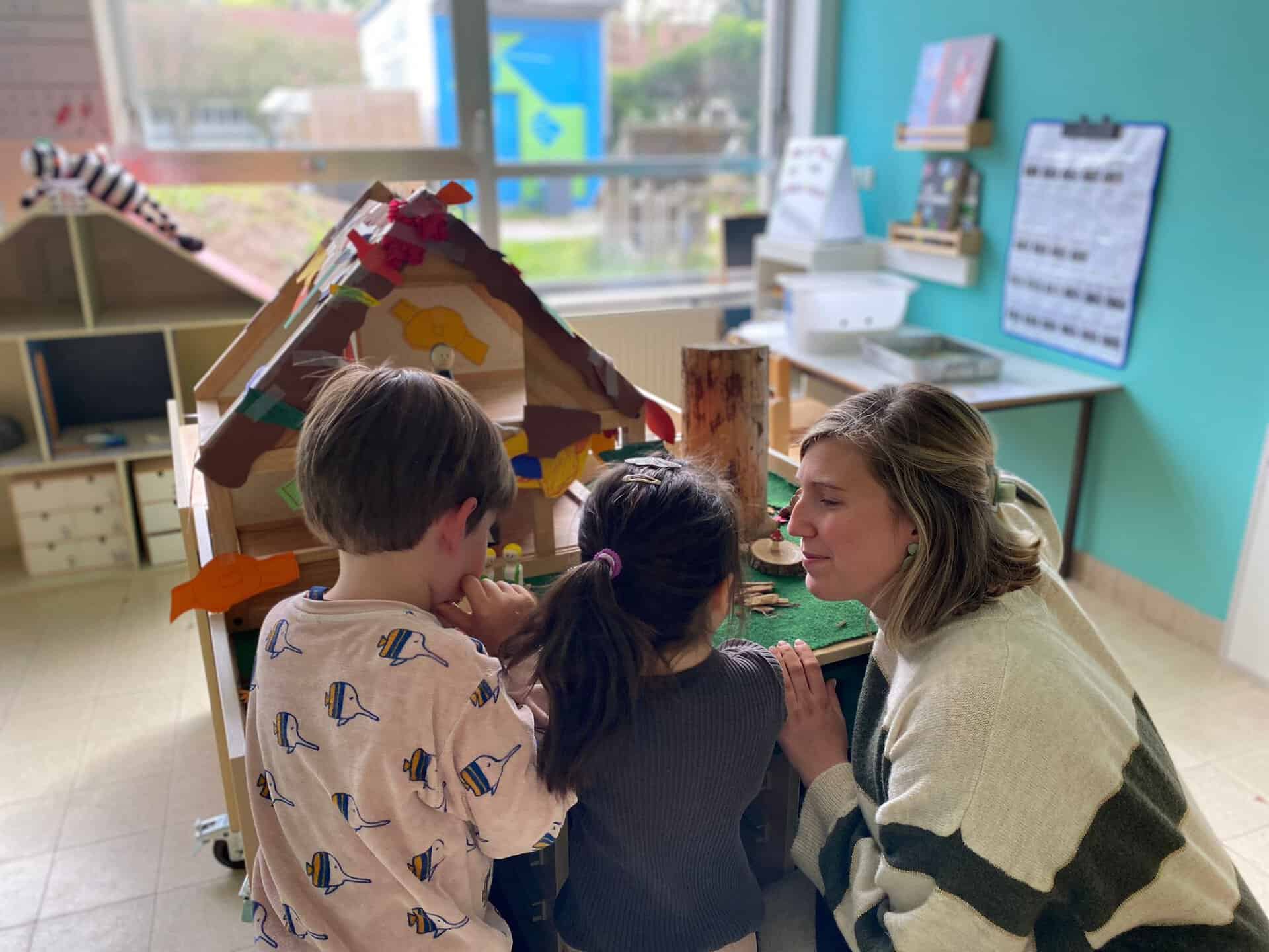Ik verschiet ook telkens weer opnieuw van hun betrokkenheid bij thema’s. Je voelt dat ze veel langer leven bij de kinderen dan ik vooraf kon bedenken. Een tijdje geleden bracht ik enkele kartonnen dozen mee om een trein te bouwen, want we passeren vaak langs het station. Enkele weken later waren ze deze nog aan het finetunen met knopjes voor de airconditioning enz… Allemaal zaken waar ik zelfs niet aan had gedacht. Hun inleving is de max!”